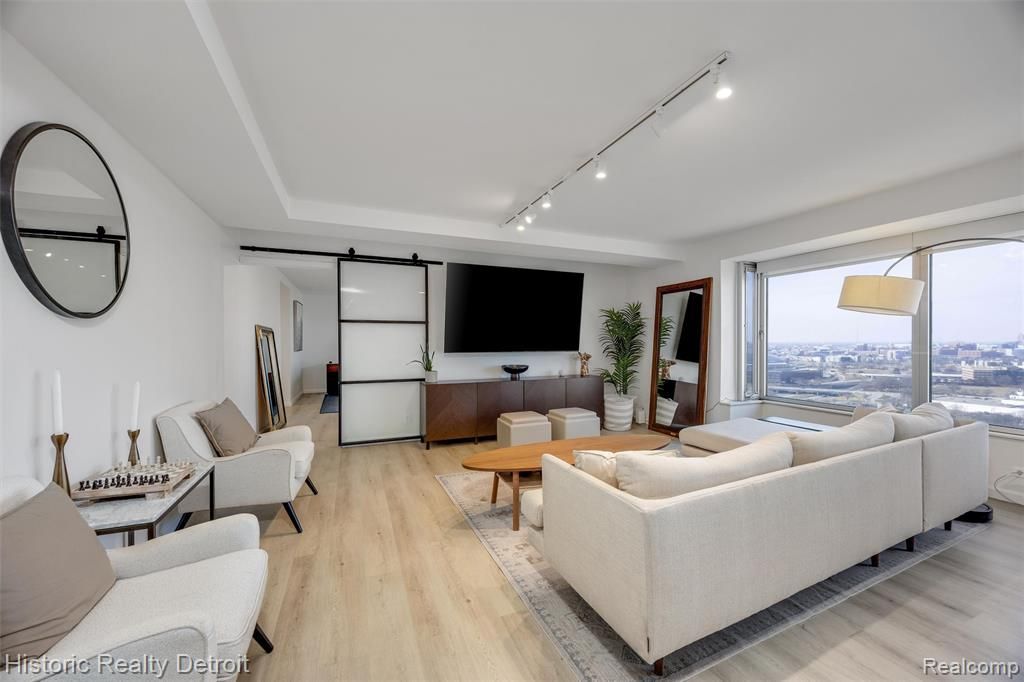OPEN HOUSE April 11th and 12th from 12:00-2:00 PM! This move-in ready combined residence offers luxury high-rise living with sweeping, unobstructed views of Detroit from the 24th floor. The thoughtfully designed 2-bedroom, 2-bath layout blends modern finishes with everyday comfort. The open-concept living space features all-new stainless-steel appliances, quartz countertops with a full quartz backsplash, and clean, contemporary lines throughout. The spacious primary suite is a private retreat with in-unit laundry, walk-in closet, and ensuite bath. Automatic, remote-controlled, blackout roller shades provide effortless light control and privacy. Residents enjoy a maintenance-free lifestyle with heat, water, cable, property taxes, 24-hour security, and access to a recently updated pool, tennis courts, and state-of-the-art fitness center included in the monthly HOA. Ideal for buyers seeking turn-key living, panoramic views, and exceptional amenities in one of Detroit’s most desirable high-rise communities. Seller is agent.