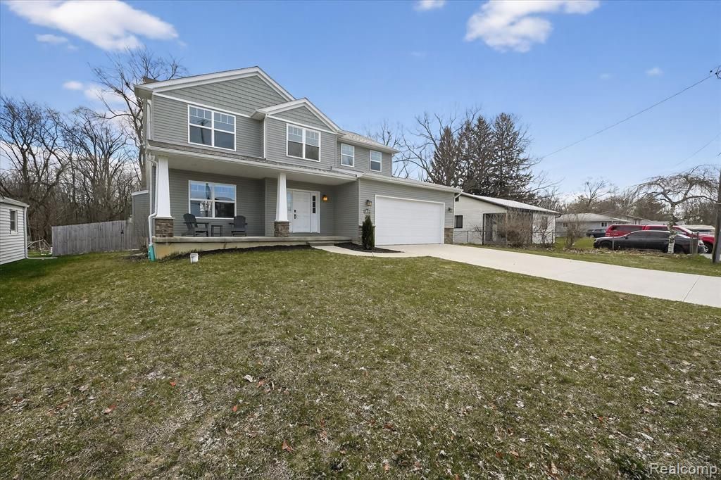 Welcome to this lovely, newer-built Craftsman-style home in Fenton Township on a generous double lot with access to all-sports Ponemah and Tupper Lakes! This spacious 4-bedroom, 2.5-bath home combines modern comfort with classic charm, featuring an open concept kitchen with granite countertops, soft close drawers, stainless steel appliances, farmhouse sink, large walk-in pantry and center island. Convenient door wall off the dining area leads to the spacious, privacy-fenced backyard with treed views. French doors off living room lead you to the perfect office or second living area space with water views. Enjoy relaxing by the gas fireplace (with a view throughout the open concept first floor) or sitting out on your covered front porch with a water view. The full basement offers an egress window and is plumbed for a full bath, offering great potential for added living space. Additional highlights include a second-floor laundry, water views from the front of the house with wooded views from the back of the house, Lake Fenton Schools, and proximity to shopping, dining, and expressways for an easy commute. Also included, huge storage shed and playscape! Better than new construction—with the water just across the street, you’ll be ready to enjoy lake life this summer! Private ingress / egress to Eastview Lake homeowners.