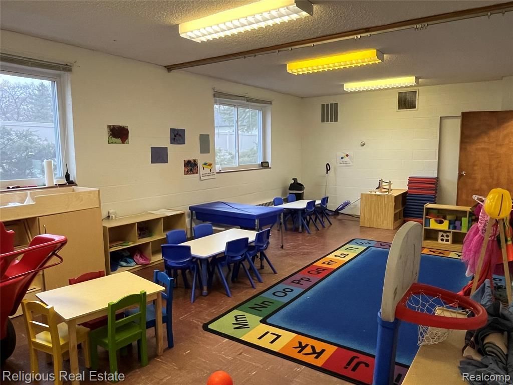 The place of worship offers a well-maintained facility suited for a variety of uses. The sanctuary provides seating for approximately 150, and multiple classrooms that support educational or group activities. Additional features include a fully equipped kitchen, two offices, and flexible gathering spaces . The property has also been previously licensed for daycare use, accommodating up to 37 children, adding to its versatility and potential revenue.