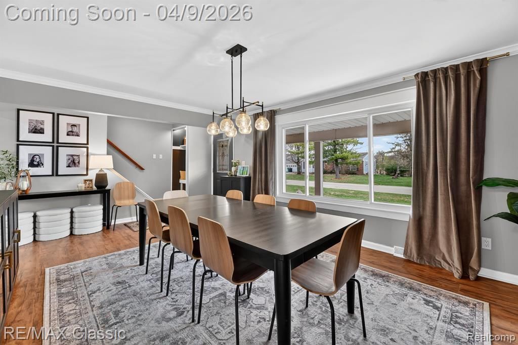 Step onto the inviting covered front porch and into this stunning traditional two-story home, where timeless charm meets today’s modern updates. Designed for both everyday living and entertaining, the remarkable formal dining room easily accommodates large gatherings and special occasions. The heart of the home is the exceptional, fully remodeled kitchen (2023), showcasing modern finishes, stylish design, and thoughtful functionality—perfect for cooking, hosting, and making memories. Convenient first-floor laundry has been thoughtfully relocated and enhanced with an attached full bath featuring a spacious, beautifully updated shower. The stepped-down living room is truly a showstopper, offering warmth and character with a natural wood-burning fireplace—an ideal space to relax and unwind. Upstairs, you’ll find gorgeous wood flooring throughout, adding warmth and elegance to the upper level. Major mechanical updates include a newer furnace and air conditioning (2024), offering peace of mind and efficiency. Car enthusiasts and hobbyists will love the amazing three-car garage, providing abundant space for vehicles, toys, and storage—making all your dreams a reality. Situated on an extra-large corner lot, this property offers both space and presence. Perfectly located near shopping, restaurants, hospitals, and major highways, this home also provides access to outdoor recreation at Kensington Metropark and includes lake privileges on all-sports Loon Lake—bringing the best of convenience and lifestyle together. Wall-mounted TVs are negotiable. Impressive, updated, and ideally located—this is a fantastic opportunity and an excellent investment you won’t want to miss!