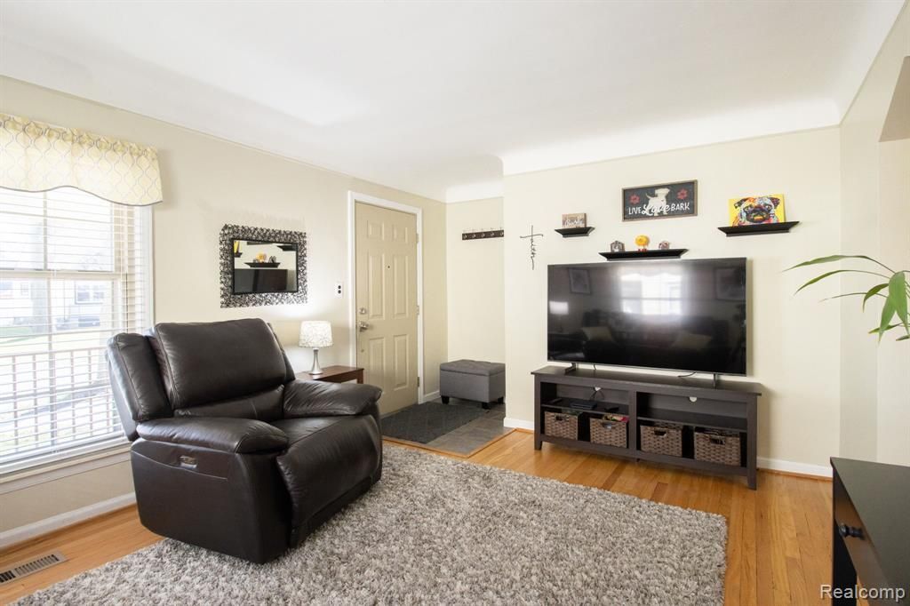 Located in desirable Ferndale, Michigan, this home offers convenient access to major freeways for an easy commute. Features include coved ceilings, built-ins, and vinyl replacement windows throughout. The front bedroom offers two closets, while the upstairs boasts an extra-large closet for ample storage. The home includes new interior doors and an updated bathroom. The deep basement provides plenty of headroom and is equipped with a sump pump. Mechanical updates include a newer electric panel, furnace (2017), and air conditioning condenser (2014). Appliances are included. Note: Little black fence at driveway is excluded.