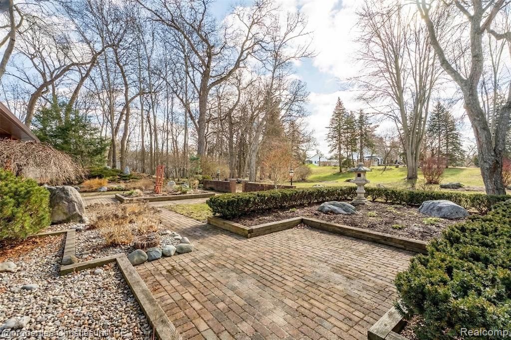 Nestled deep off a quiet winding road in Bloomfield Hills, where a storybook-like drive crosses gently over a natural-stone bridge spanning a flowing stream, this south-facing estate is being offered for the first time in decades. Offering 2.63 wooded acres of rare privacy just moments from Cranbrook Kingswood Educational Community, Oakland Hills & Bloomfield Country Clubs, & downtown Birmingham, 291 Barden is truly an opportunity not to miss. Set well back from the road and surrounded by mature hardwoods, this architecturally distinctive ranch is designed for seamless, light-filled living with exceptional and intentional feng shui flow throughout. Expansive walls of glass frame tranquil views of the stream that encircles the backyard, creating a setting that feels both grounded and serene. The main level features gracious living and dining spaces anchored by three fireplaces, a private executive library, and 5 generously sized bedrooms. With 5 full and 2 half baths, the layout offers remarkable versatility for everyday living and extended stays alike. The walkout lower level opens directly to nature and provides substantial recreation space ideal for a home theater, fitness studio, golf simulator, game lounge, or future wine cellar. A beautiful oversized fireplace flanks floor-to-ceiling windows that overlook the incredible outdoor space. Outdoors, a custom crafted koi pond enhances the peaceful, resort-like atmosphere, complemented by brick paver terraces and multiple entertaining areas overlooking the rolling landscape. Expansive rear flat green space provides ample room for a future pool, pool house, and/or sport court while preserving privacy and the estate’s natural character. Complete with a 4+ car garage, generous storage, and a sweeping circular drive that creates a grand arrival experience, this Bloomfield Hills estate presents a rare opportunity to move in, refresh, expand, or build new in one of the area’s most distinguished residential settings. BATVAI