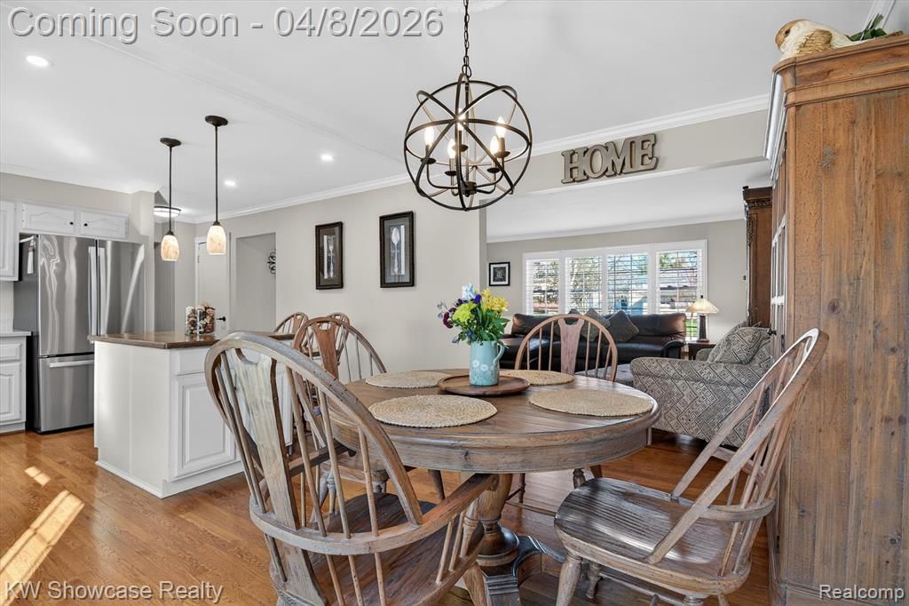 Beautiful and meticulously maintained 4-bedroom Cape Cod in highly desirable Burton Hollow Estates with outstanding curb appeal. Bright living room with large picture window and hardwood flooring throughout main living areas and bedrooms. Plantation shutters, new light fixtures, and hardware added throughout. Freshly painted interior and new landscaping. Updated kitchen with Corian countertops, island/breakfast bar, pendant lighting, and stainless-steel appliances, including new gas stove, new dishwasher. Dining room features new Andersen door wall (2023) leading to low-maintenance composite deck. Spacious family room with gas fireplace, French doors open to a 20 x13 addition with wood pellet burning stove and abundant natural light. New vinyl plank flooring (2023) in family room and addition. Convenient new first-floor laundry plus second laundry in finished 24x13 basement. Primary bedroom offers large windows and full-wall closet. Updated primary bath with walk-in shower. Additional highlights include remodeled baths, vinyl windows, newer A/C units, boiler (2015), hot water tank (2021) and more! Great location near schools, parks, community swim club, shopping, dining, and expressways.