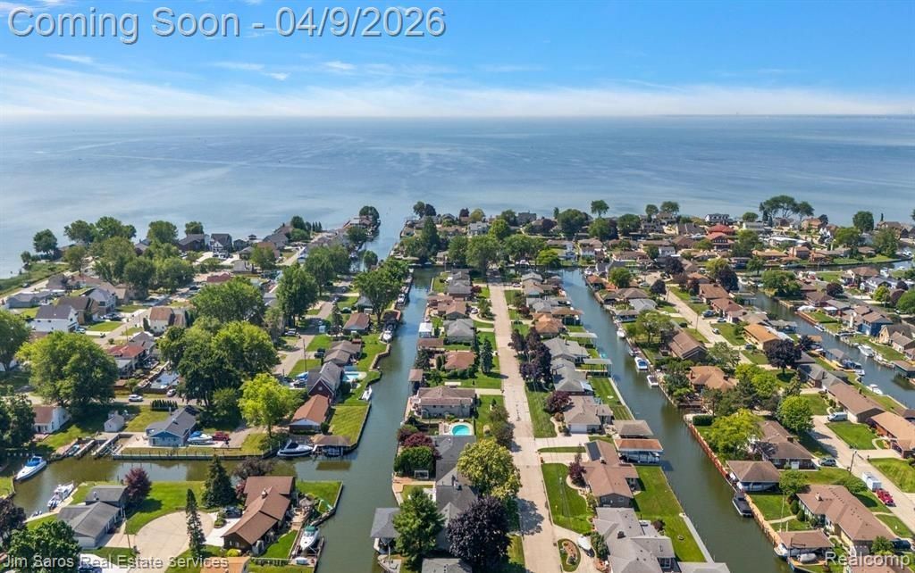 Rare waterfront offering with 120 feet of premium canal frontage on the sought-after Eastside Seaway with quick, direct access to Lake St. Clair. Perfectly positioned on a wide canal at a “T” for easy maneuverability, this custom brick home delivers exceptional indoor and outdoor amenities and a rare 1,300 sqft 5+ car attached garage! The large first-floor primary suite provides comfort & convenience, while the highly desirable open concept layout flows seamlessly between the large kitchen & family room with fireplace and a light-filled, year-round sunroom overlooking the water. Formal living & dining rooms offer elegant entertaining spaces, complemented by a first-floor laundry & mudroom. Upstairs features two spacious bedrooms, a full bath, & a versatile bonus room above the garage with separate HVAC—ideal for a home office or studio. The finished basement offers over 1,500 sq. ft. of additional living space, including a wet bar, kitchenette, large recreation area, half bath, cedar closet, & dedicated workshop. Additional highlights include a 2017 steel seawall, 2018 custom boathouse w/covered hoist (fits large cruiser), & an additional hoist for personal watercraft. Outdoor spaces include Trex decking, hot tub, hand-laid stone patio & walkway, professional landscaping, & irrigation drawing from the canal. A rare heated and cooled 5+ car garage (over 1,300 sq. ft.) is a standout, featuring epoxy floors, oil separator drain, built-in storage, sink, multiple overhead doors, and wired for Level 2 EV charging—ideal for car enthusiasts or hobbyists. Also includes updated electrical, plumbing, insulation, Marvin windows, whole-house generator, and smart thermostat. Located in desirable Pointe Rosa with low HOA dues (~$300/year) including canal maintenance and within the L’Anse Creuse School District, this property offers a rare opportunity to enjoy the best of Lake St. Clair living—boating, entertaining, and everyday luxury from your own backyard.