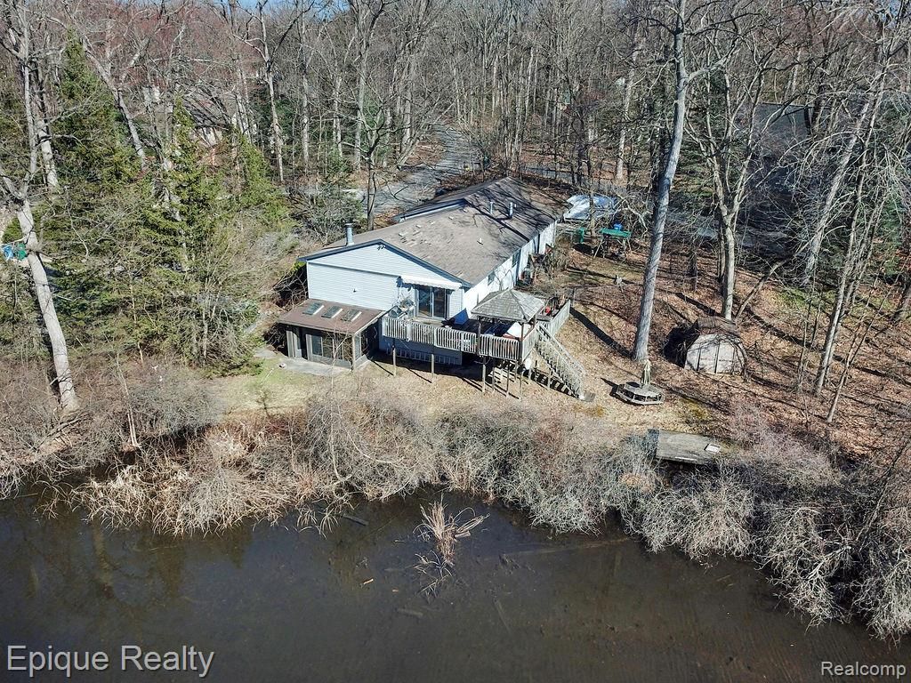 Open House Saturday 11: 1-4p. Attention investors! Prime opportunity in Commerce Township on Woodbridge Lake. This property offers endless potential for a full remodel. Situated on 2 parcels totaling 1.7 acres, this one of a kind property is ready for your vision. Rare opportunity to own a tranquil slice of nature- the 2nd parcel extends into the lake and is surrounded by protected lily pads, creating a peaceful, private waterfront setting rich in natural beauty- you'll love the incredible sunset views from your deck/kitchen doorwall! This 1204sqft ranch has an open concept living room/dining/kitchen floor plan and has 2 bedrooms, 2.5 baths with an additional 1200+ sqft finished basement. Don't let the view from the road fool you, this home seems to just keep going as you go through the first floor and head downstairs to the finished walkout basement offering a bar area, game area, bonus flex room to make a guest room or office with attached full bath, and 3 season room with gas stove. The home has a convenient fenced area for pets/kids and an attached 2.5 car heated garage and workshop. But there's more! The furnace is piped to a wood burning stove- in case you ever lose power & the air compressor in garage stays. You are tucked away in nature but still close to convenient shopping & dining plus centrally located to all of the lakes: Long, Union, Cooley, Walled, Wolverine and Commerce Lakes. Walled Lake School District. Close to M5/96, 15 min to Oakland International Airport & Huron Valley Hospital, 5 minutes to Northern HS, Glengarry Elementary, Wise Woods and Victory Dog Park. Home is sold "As Is" and all items at time of closing stays. BATVAI. DRBNG. Some photos virtually staged and unstaged to see the possibilities. 2nd parcel is mostly in the lake- Buyer to verify potential use and environmental restrictions due to protected natural features.