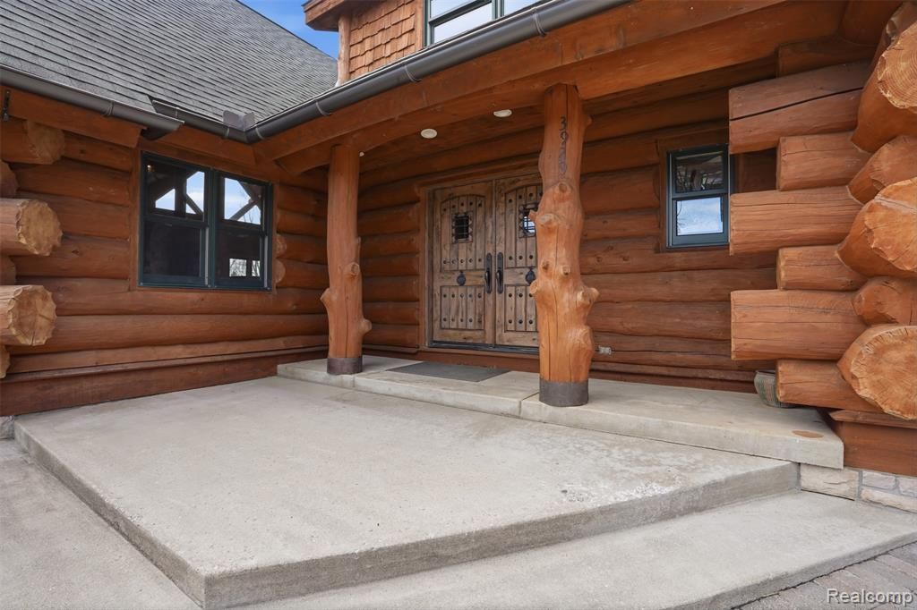 Beyond the gates of the prestigious community of Timber Green in Howell lies a home that feels both worlds away and thoughtfully connected. Set on over five private acres, this extraordinary full log estate was meticulously crafted using imported lumber from Alberta, Canada, each log individually labeled, shipped, and assembled on-site to create a residence that is as much craftsmanship as it is home. Surrounded by mature trees and open acreage, the setting offers true privacy without sacrificing convenience. Step inside and you’re struck by the warmth & natural aesthetic only a true log home can offer, while expansive ceilings allow the space to feel open, bright, and inviting. The main living area is designed for both everyday comfort and elevated entertaining, where natural textures, craftsmanship, and views of the surrounding acreage come together seamlessly. Main-floor primary suite offers convenience and privacy, thoughtfully positioned within the home's functional layout. The home continues to unfold with generous living areas and a walkout lower level, providing additional flexible living space ideal for entertaining, guests, or multi-generational living. Outdoor living begins with a sun-filled wraparound deck and screened-in porch. Car enthusiasts, hobbyists, or those needing additional space will appreciate the attached three-car garage along with a detached three-car garage, offering flexibility for storage, workshops, or recreational vehicles. This is more than a home, its a handcrafted estate where rustic architecture meets elevated living. A place where five private acres, imported materials, and timeless construction come together in one of Howell’s most sought-after gated communities. No dirt roads, easy access to nearby amenities, and just a short drive to Oak Pointe Country Club, schedule your showing today!