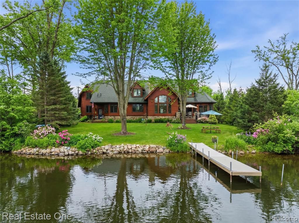 First time on market- owner built, architecturally drawn, western red cedar Craftsman home. Nestled on Gallagher Island on the all sports Huron River Chain of Lakes, between Gallagher & Strawberry Lake on a private lot with 65’ of frontage. Engineered, insulated foundation with 52 helical piers, 4’ crawl space with cement flooring. Stick built house - no OSB, all plywood. Sound insulation on most interior walls. Oversized garage with custom wood door. Architectural shingles on 50 year roof in great condition. New caps and ridge vents ('23). New Trex railings and steps on all porches. Quarry tile on two rear porches. White oak wood flooring sanded and stained in kitchen, dining, entryway, and half bath ('26). New AC with transferable warranty ('24), HWH ('20). Central vac. Kitchen, bath, laundry room and office all have custom cabinets imported from Canada. Quartz countertops in kitchen, coffee bar, bathrooms, and laundry. Walk in pantry in kitchen. Four season room with vaulted ceiling. Floors prepped for radiant heat. Wood burning stove in great room. Custom woodwork throughout including mahogany front door, 5” wood base moldings, solid 8’ alder wood doors on the 1st floor, 7’ on 2nd floor, 3 wood archways, and built in window seats. Spacious 1st floor primary suite with coffee bar, stand alone 6ft tub, and steam shower. Loft overlooks the great room. Super large bonus room has four skylights. Two spacious bedrooms share a Jack and Jill bath with two separate vanities and walk in shower. All rooms, except one, have one of the most beautiful views of the Huron River. Blue herons, egrets, eagles, swans, and many other bird species call this area home.This home is high and dry! No flood insurance needed, as structure is removed from the floodplain. Property has an artesian well. Great drinking water! Gallagher Lake Property Owners Association maintains dust control, gravel, and snow removal. Pride in ownership!
