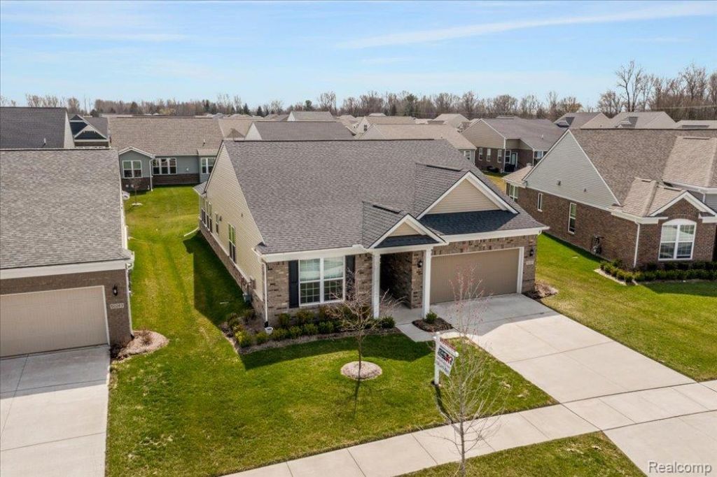 Set within Canton’s highly sought-after Grandview Estates, this better-than-new Pulte-built home offers a low-maintenance lifestyle with thoughtful upgrades. Built in 2022, this Abbeyville floorplan delivers the convenience of single-level living paired with elevated design and technology. Spanning 1,834 square feet, this 3-bedroom, 3-bath home is designed for both comfort and function, with an open layout that flows effortlessly from the main living space into a bright sunroom—perfect for relaxing or entertaining. Soaring 9’ ceilings and engineered hardwood flooring create a clean, cohesive feel, while recessed lighting enhances the home’s modern aesthetic. The kitchen stands out with granite countertops, a stainless-steel undermount sink, a full stainless-steel appliance suite, and a striking herringbone-tile backsplash. Aristokraft maple cabinetry with crown molding and chrome hardware adds a refined finish, while the exterior-vented range hood elevates both function and design. The owner’s suite offers a private retreat with a spacious walk-in closet and a luxury bath featuring dual sinks, quartz counters, and an oversized ceramic tile shower. Built on a slab for easy upkeep, this home eliminates basement maintenance while maximizing livable space. The fully insulated, attached 2-car garage adds year-round comfort and utility. Outside, enjoy a professionally maintained setting with sod, sprinklers, snow removal, and yard care included. What truly sets this home apart is its blend of smart infrastructure and energy efficiency, including Cat5 wiring throughout, an attic-mounted digital antenna, a high-efficiency Lennox HVAC system, enhanced insulation, and a 50-gallon quick-recovery water heater. From the four-sided brick exterior to the 25-year dimensional roof and premium construction details, every element reflects quality and durability. Move-in ready with premium upgrades already complete—this is the one buyers wait for but rarely find.