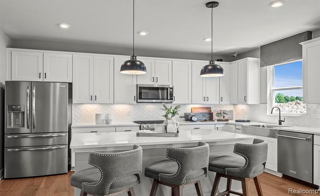 Opportunity to lease this Brand new brick colonial (Newbury Model) just being completed (April 2026). Brick Colonial on a premium lot in a great sub in South Lyon with South Lyon Schools!! Features: 4 bedrooms, 2.5 baths. 9 ft ceiling heights on 1st floor. Large kitchen with Island, upgraded kitchen cabinets, Quartz counter tops & pantry. All Stainless Steel Appliances (Refrigerator, Gas Stove, Dishwasher, Microwave), Washer & Dryer. Kitchen nook. Study / Library, Large master suite with private bath with guartz counter tops, shower & large walk in closet. All bedrooms have walk in closet. All baths have guartz counter tops & Luxury Vinyl. Family room. Luxury Vinyl floors. Railing with spindles. Extra deep Walkout basement with ready 3-piece rough plumbing. High efficiency (92%) furnace. Central air. 2 car garage with garage door openers. 30 year dimensional roof shingles. Maintenance free siding. Must See!!