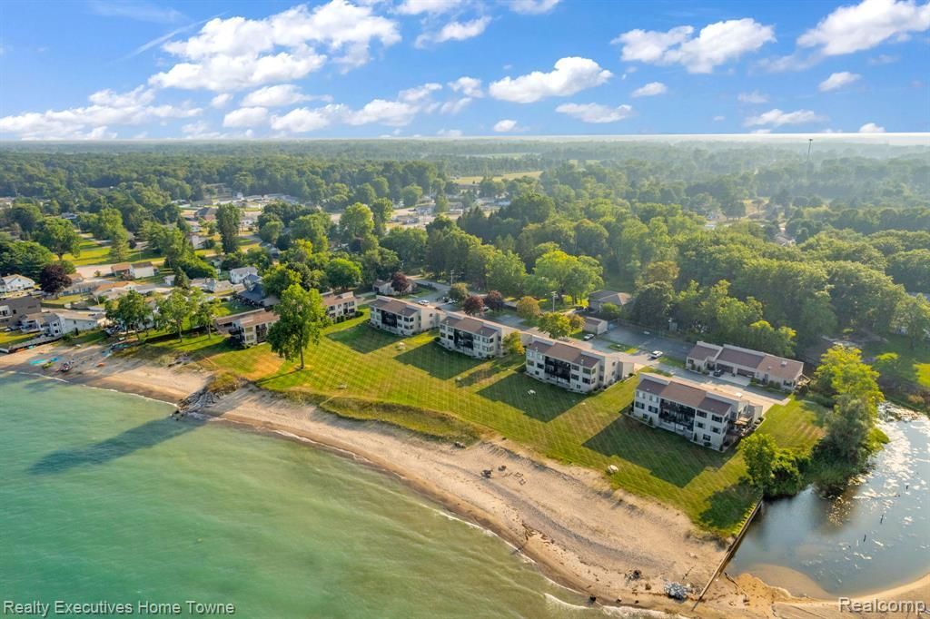 Start your day with breathtaking Lake Huron views! This pristine lakefront condo boasts 635 feet of private sandy beach. Relish unobstructed lake vistas from both levels and your covered balcony, accessible from the primary suite and living room. Spanning 2,100 square feet, this updated home features 2 bedrooms (plus a 3rd sleeping area downstairs) and 3 fully remodeled bathrooms with custom cabinets, Corian countertops, tiled showers, and ceramic floors. The modern kitchen showcases ceiling-high cherry wood cabinets, Corian countertops, a glass tile backsplash, and premium KitchenAid appliances. The living room offers a new gas fireplace and expansive windows for stunning lake views. Enjoy the convenience of a main-floor laundry room. The finished walk-out lower level includes a 3rd sleeping area, a family room with a kitchenette, storage, and a utility room with a new on-demand boiler and hot water system. Book your private tour today and make this summer one to remember on the beach! The washer, dryer, and small refrigerator in the lower-level wet bar are not included in the sale.