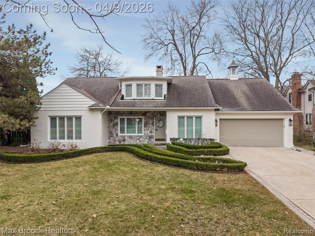 Nestled in one of the most sought-after locations in Grosse Pointe Shores, just half a block from the prestigious Grosse Pointe Yacht Club, this beautifully maintained home offers an exceptional blend of timeless elegance and modern convenience. Residents enjoy exclusive access to the private Shores park, featuring a pool, tennis and pickleball courts, sand volleyball, basketball, and a harbor shared with the yacht club. Inside, the home showcases rich hardwood floors, vaulted ceilings with tongue-and-groove wood detail, and skylights that flood the kitchen with natural light. A built-in Sub-Zero refrigerator, wet bar, and thoughtful layout make it ideal for both everyday living and entertaining. The stunning double-sided stone fireplace anchors the living space, complemented by a dramatic floor-to-ceiling window wall with sliding glass doors opening to an expansive 1,200 sq ft paver patio. The main-floor primary suite offers true retreat living, complete with a dual-head shower, an oversized walk-in closet (perfect for a home office), and direct patio access. First floor washer and dryer hookup is a convenient option. Additional highlights include Pella windows, plantation shutters, a tankless water heater, and a fenced yard surrounded by professionally designed, classic landscaping. Upstairs, a spacious family room provides flexibility as a second living area or potential fourth bedroom—perfect for guests or work-from-home needs. A rare opportunity to own a refined home in an unbeatable location, combining lifestyle, luxury, and community.